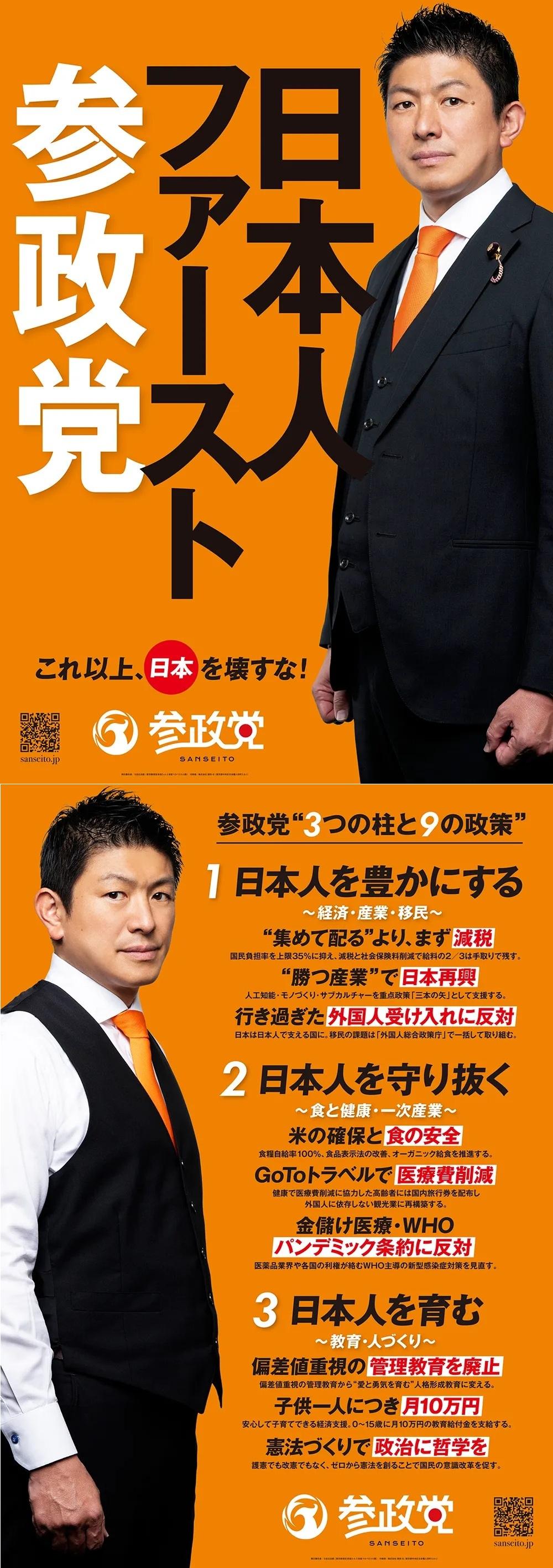 参政党は先の参議院選挙でこの『日本人ファースト』を旗印に掲げ、